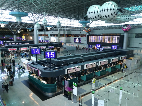 桃園国際空港は第1ターミナルと第2ターミナルがあり、エバー航空は第2ターミナルで運行しています。MRT空港第2ターミナル駅到着後、エスカレーターで3F出発ロビーに移動します。