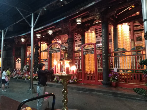 最寄り駅はMRT龍山寺駅で台北駅からMRT板南線(藍)で2駅です。20時近くになっていたのですが、多くの参拝客で賑わっていました。皆さん熱心に参拝しているのが印象的で、台湾の人々の信仰心が伝わってきます。