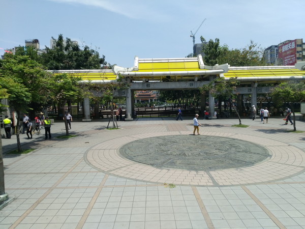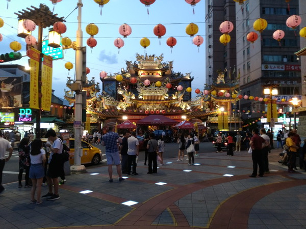 5番出口から出て右に進むとまず目に飛び込んでくるのが正面奥に見える「慈祐宮」と呼ばれる廟です。ライトアップされていて華やかですね。