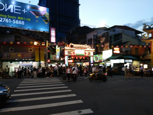 そして交差点を挟んで夜市の入口です。大勢の観光客で賑わっていて活気があります。