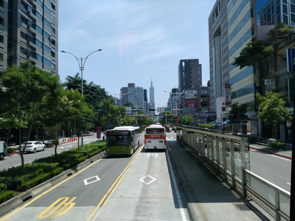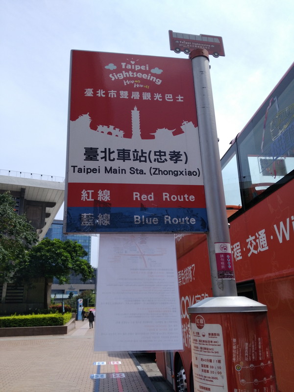 展望台から地上に戻るとお昼の時間になっていました。ビルの中は勿論のこと周辺にも多くの飲食店がありますがどこも混雑している上にピンとくるお店もありません。オープントップバスが来るタイミングだったので台北駅に戻ることにしました。「MRT市政府駅」や「MRT国父記念館駅」などに停車し、「忠孝東路」という大通りを通って台北駅に到着です(約30分)。