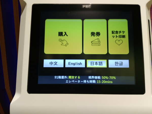 入場後は簡単なセキュリティチェックを通ってエレベーターに向かいます。2004~2015年は世界最速だったようですね。89階の展望台までわずか37秒で着いてしまうようですが、実際乗ってみるとあのエレベータ特有の重力を感じることがありませんでした。揺れもほとんど感じず耳詰まりもありません。この上昇速度でこの快適さは凄いことです。