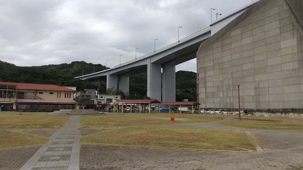 さらに進むと千畳敷展望台があります。この展望台からは大鳴門橋の西側の側面を眺めることができます。また、周辺には食事処やお土産屋さんが軒を連ねていたのですが、思った以上に閑散としており寂しい雰囲気でした。
