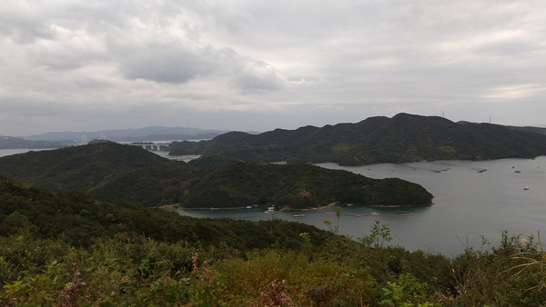 県道11号を北に進み鳴門公園を過ぎたところで鳴門スカイライン(県道183号)を約10分走行すると、四方見橋の手前に展望台があります。鳴門スカイラインは海と山に囲まれた変化に富んだ道路で楽しくドライブできました。写真を撮らなかったのですが、四方見橋はジェットコースターのような急こう配で印象に残っています。