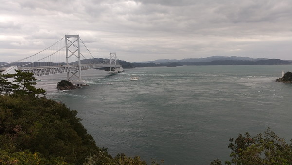 鳴門公園は、鳴門海峡や大鳴門橋に隣接し、これらを正面から羨望できるスポットです。また、鳴門海峡は渦潮で有名ですが、これは瀬戸内海と紀伊水道の干満差により発生する自然現象です。満潮と干潮は1日2回ずつあり、鳴門海峡ではこのタイミングで渦潮が発生します。また、春と秋の大潮時に最大となります。満潮時と干潮時の前後約1時間半が渦潮の見頃となります。満潮時と干潮時は毎日異なるためウェブページで事前に確認してから来たほうがいいと思います。ちなみに、今日は満潮が8時50分、干潮が15時40分なので、午後の干潮の時刻に合わせて来たのですが、少し早く到着してしまいました。