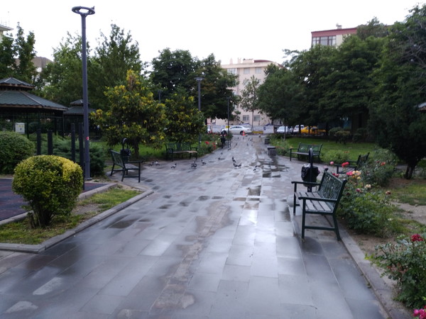 少し歩くと公園らしきところがあります。昨日降った雨が上がった後なので空気が澄んでおり気分が良いです。