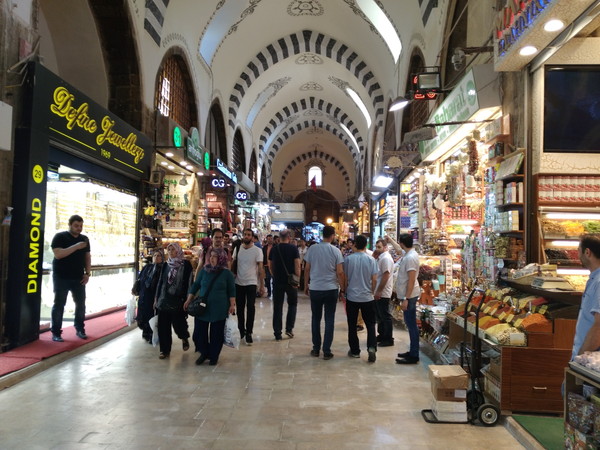 大渋滞を抜けてヨーロッパ側に移動、新市街を抜けてガラタ橋を渡り旧市街に入ります。そしてすぐ近くにある、次の観光地エジプシャンバザールに到着します。通常であれば30分の距離ですが、今日は1時間半掛かりました。ここはグランドバザールに次いで大きく、香辛料を扱うお店が多いことで知られています。
