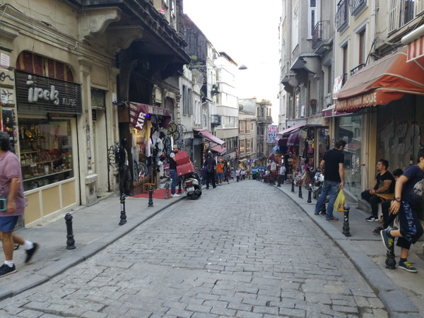 ガラタ塔には入場料を払って登ることができるのですが、沢山の人が列を作っています。残り時間を考えると集合時刻に間に合わないので外観だけ眺めて終了です。ガラタ塔からの眺めは素晴らしいという話を聞いていたので心残りではありますが、周辺の独特な雰囲気を味わえたので満足です。
