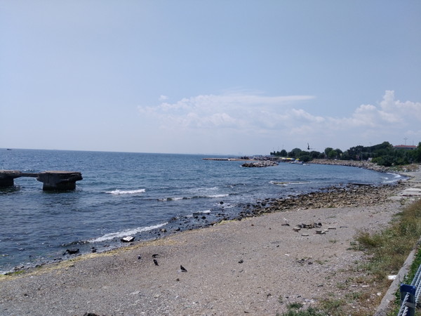 1時間ほど自由時間があるのですが、ブランド店を回る趣味はありません。ここはいいので早くヨーロッパ側に行きたいなーというのが本音ですが、これもツアー、仕方ありません。地図を確認すると近くに海があるので、その辺で適当に時間を潰すことにしました。通りから横に伸びる細い道を10分ほど歩くとマルマラ海が見えてきます。この辺は公園にもなっており日向ぼっこをしている人の姿もチラホラいます。私も空いているベンチに腰掛け海を眺めてしばし時を潰します。