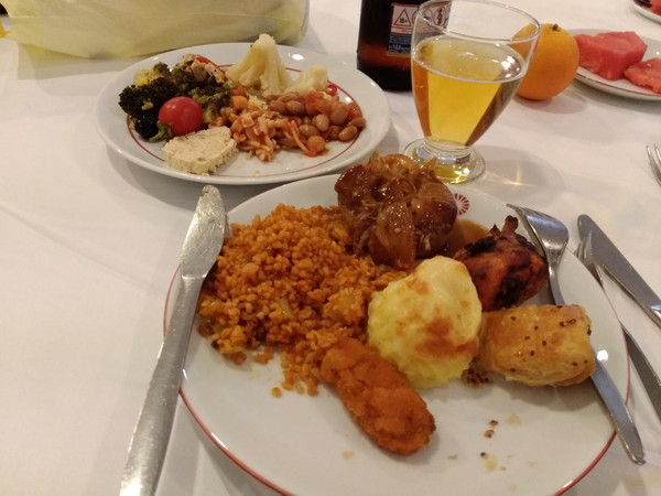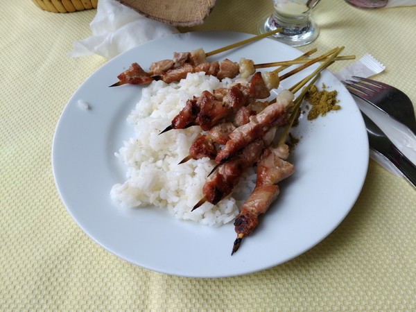 メインディッシュはエフェソス名物チョップシンです。英語だと店名にもなっているcop sisと表記します。ケバブの一種で、短い串で肉を焼くのが特徴です。このような調理をするのはこの辺だけだとか。食感は焼き鳥に近く、こちらも美味しかったです。