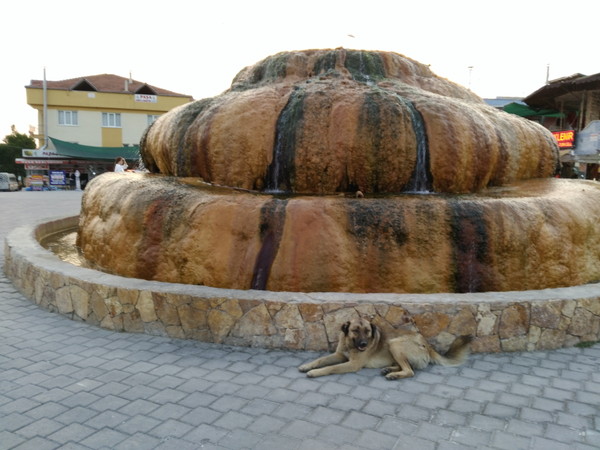 面白い形をした噴水もあります。また、周囲には結構な数の犬がうろついています。この近くには何軒か食べ物屋さんがあり、夕食時だったので大勢の人が屋外で食事するのを見かけました。リゾート感が満載です。