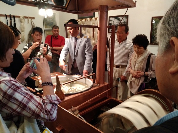 工房に入ると責任者らしき方が出てきて、流暢な日本語でジョークを交えながらトルコ絨毯について説明を始めました。ここでは絨毯の織り方や糸の紡ぎ方を実物で見ることができました。