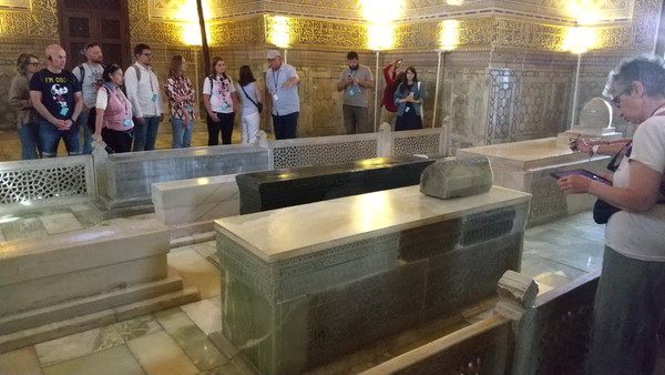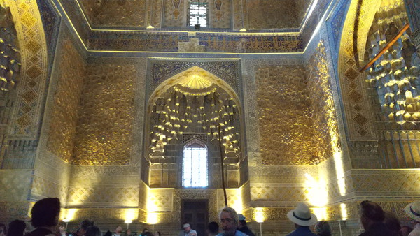 ドーム内部はもう見事としか表現のしようがありません。至る所が黄金一色、それ以上に印象的なのが精緻の極みに達した装飾で、時間を忘れて見入ってしまいました。周囲には観光客が大勢いたのですが、霊廟内はわりと静かで皆見入ってるんですよね。良い物は万国共通ってことですよね!基本的に黄金の類はケバケバしいだけで興味が引かれることは無いのですが(例えば黄金茶室とかw)、そういういやらしさを全く感じませんでした。同じ黄金でもこんなにも受ける印象が違うのは、もうこれは作りて側のセンスとしか言いようがない気がします。