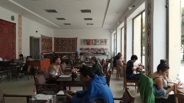 注文を終えてくつろいでいると、隣の席で1人で座っていた私より少し年配の女性から「日本人の方ですか?」と声を掛けて頂いたので、話の流れで同席させて頂くことにしました。1人でウズベキスタンを旅行していて、私と同じようなスケジュールで旅行されていました。かなり旅行慣れしているようで、あの最高難易度と言われるインドにも行ったことがあるとか。学生時代はカイロ大学で学んだこともあるそうで、色々面白い話が聞けました。