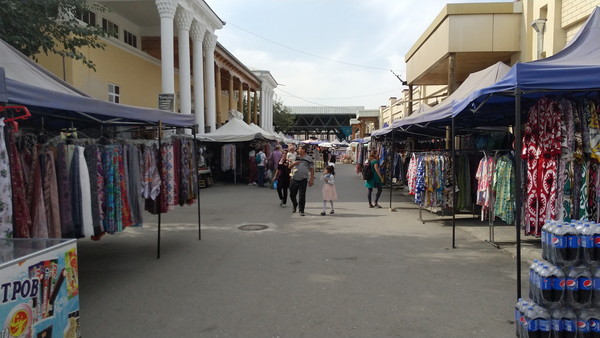 カリモフ通りに面した市場脇のスペースでは、洋服やお土産を売るお店が並んでいました。