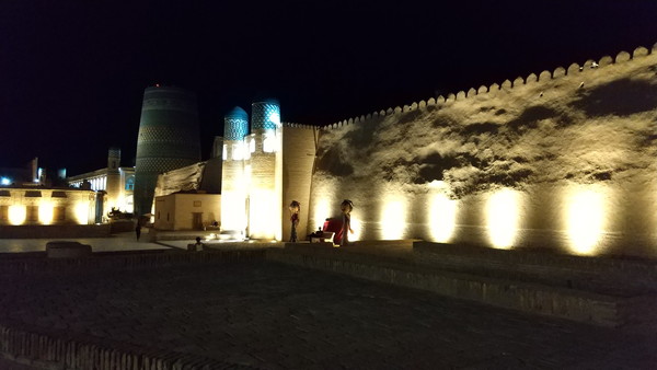 夜になるとイチャン・カラ全体がライトアップされ、大変良い雰囲気になります。露店やカフェは夜遅くまで営業しており、メインストリートは日中並みに人で賑わっています。昼間何度も見ている同じ建物でも、夜は夜で日中とはまた異なる趣なので見飽きることがありません。