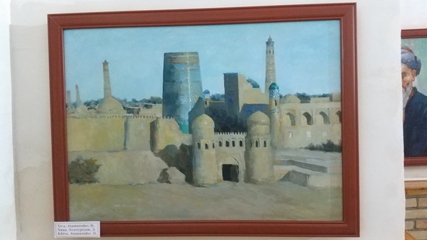 今回お世話になったホテルは「ムハマンド・ラヒム・ハン・メドレセ」という建物です。「フェルズシャ―」というニックネームの詩人としても知られていた、サイード・ムハマンド・ラヒム・ハンにより1876年に建てられました。最初、この建物の中はホテルだけだと思っていたのですが、ホテルの反対側は博物館としても利用されていました。正確に言うと、入口のある表側が博物館で、裏側がホテルになっています。博物館は共通入場券で見学可能です。展示数はそれほど多くなく10~20分もあれば見終わってしまいます。このメドレセでは、ヒヴァの歴史(特にヒヴァ・ハン国)をテーマにした展示がされており、歴代ハンの写真や絵画、当時の衣装などが陳列されていました。他にもいくつもの展示を見ましたが、個人的にはここが一番面白かったです。