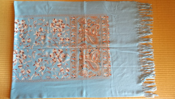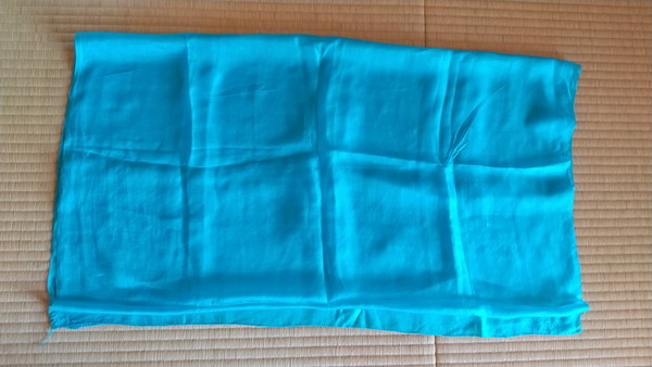 工房の前の通りには、スカーフなどを売っている露店が並んでいたので、一つぐらい買っていくかぁと眺めていたところ、近くで座っていた別のお店の女性店員さんに捕まってしまいましたw 私がネギをしょったカモに見えたんでしょうか?まあ、嫌な感じの押し売りでもなかったので、店員さんに誘われるがまま、工房の隣にあるお店に入ってみました。お店の中は広くて、洋服やバッグ、靴下などが陳列されており、スカーフだけ陳列している部屋もあり、露店とは比べ物にならない品揃えでした。ただ、この手の物には全く興味がないため、どれが良いのか皆目見当つきません。店員さんは察してくれたのか、いくつかオススメを紹介してくれました。その中に鮮やかな青一色のシルクのスカーフがあったので買ってしまいました。模様が全くないので面白みは無いのですが、ウズベキスタンと言えば青ですからね、どうしても目が行ってしまいました。また、ヒヴァの名産キャメルウールのスカーフも紹介頂いたのですが、これがとても手触りが良かったので合わせて購入してしまいました。100%手作りだそうです。お値段は、それぞれ20ドル、30ドルと思ったよりも良心的で、購入の際は合わせて40ドルに値引きしてもらいました。まあ、値札が貼ってあったわけではないため、本当に値引きしてくれたかは分かりませんw