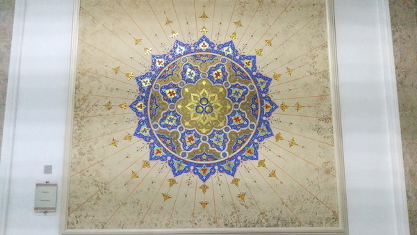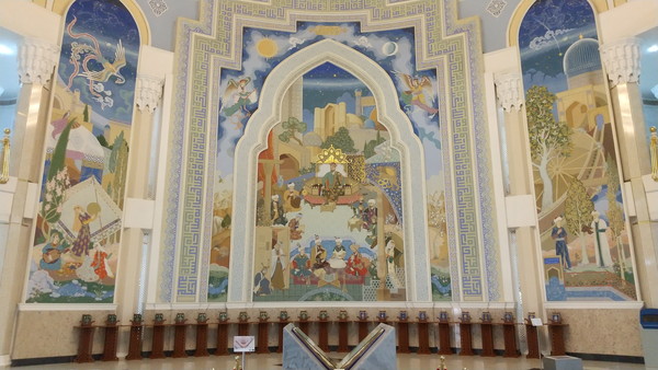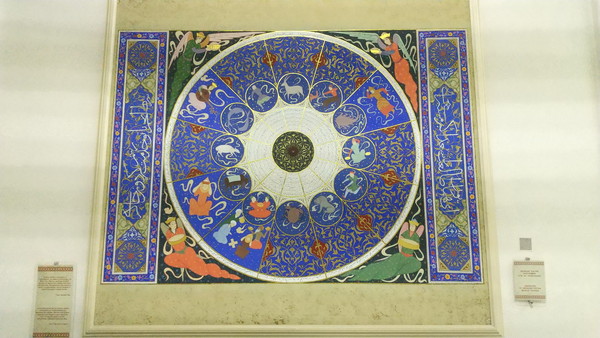 入って目を引くのが、中央ホールの大きなパネルです。ティムールの生涯を描いた複製パネルで、大変見応えがあります。