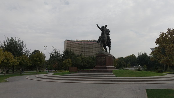 広場の中心にあるのがティムール像です。ティムールについては、以前の投稿で説明しているので割愛します。ソビエト連邦時代は、ここにはカール・マルクス像があったそうですが、独立後に撤去されティムーズ像に置き換わったようです。あいにくの曇り空だったので、景観は今一つだったのが残念です。