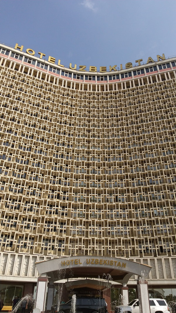 ティムール像の背後に見える大きな建物は「ホテル・ウズベキスタン」です。タシケントの中心地にドーンと構えるホテルで、超高級ホテルのような印象を受けますが、booking.comなどで調べてみると1泊8,000円程度からで宿泊可能です。ホテル1階には両替所やATM、simカードを販売する場所もあるため、多くの外国人観光客がここを利用するそうです。実際、この後ホテルに行ったのですが、両替所の前には行列ができていました。観光するにはとても良い場所にあるため、日本の団体ツアーでもよく利用されるようです。