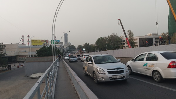 時間に余裕があったこともあり、空港への移動はバスを利用してみました。これが後で裏目に出ます。ホテルすぐ近くのバス停で待つこと10分程度で、11番のバスがやって来ました。Yandex Mapによると、このバスはタシケント国際空港で停まり、最後は国内線のターミナルまで行くようです。道路は比較的混んではいましたが20分ぐらいは順調に進んでいたのですが、次のバス停がタシケント国際空港だったところで、道路の端の方で停まってしまい、何故だか降ろされてしまいました。どうやら、何らかの事情により大型車は空港方面の道路を通れなくなってしまったようです。少し途方に暮れたのですが、他の乗客はどうするんだろうかと周囲を観察していると、空港方面に歩いていく人がいたので後から付いていきました。よく見ると一応、歩道らしきものあるので、歩いて行けるようです。距離も1kmぐらいだから大して時間は掛からないと思っていたのですが、これが思った以上に大変でした。直線距離としては1kmなかったのですが、途中から歩道が無くなり、あちこち大回りする必要がありました。荷物がそれほど多くなかったので何とかなりましたが、かれこれ2~3kmぐらいは歩いたと思います。最後の最後で散々な目に遭って、無難にタクシーを呼んでおけば良かったと心底思いました。