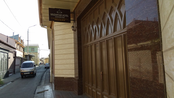 今日から3泊お世話になるのは「マザフェア ホテル サマルカンド」です。サマルカンドの象徴的な観光名所レギスタン広場から徒歩5~10分程度の場所にあり、シャーヒズィンダ廟群やグル・アミール廟などの名所も一応徒歩で観光可能です。イチャン・カラやブハラ旧市街とは異なって、サマルカンドは広いエリアに観光名所が点在しているので、徒歩のみでの観光は難しくタクシー移動する人が多いようです。