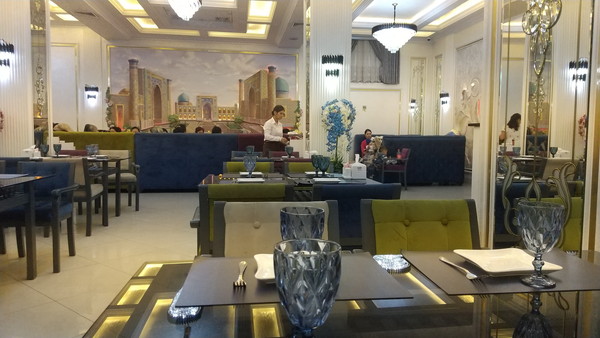 店名の「ミッリ―・タムオラル」は伝統料理という意味だそうで、メニューはウズベキスタンの伝統料理を中心に構成されていました。内装は結構派手な感じで、音楽も流れていました。若いスタッフが多く、皆さん忙しそうな感じです。
