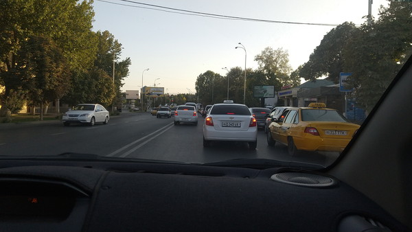 ドライバーは愛想の良い若いお兄さんでした。道路は混雑していて、特に交差点付近はカオスな状況で、さすがサマルカンドは都会だなぁ、ブハラやヒヴァとは雰囲気が全然違うなぁと感じました。約30分でホテルに到着です。料金は22,500スム(約300円)でした。