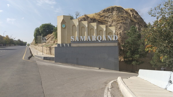 シヨブバザールを過ぎた所にある陸橋を渡ると「ハズラティヒズル・モスク」が見えます。写真を見ると勾配になっているのが分かると思いますが、この道を進むと「アフラシャブの丘」となります。チンギス・ハーンが侵攻する前にサマルカンドの中心だった場所です。