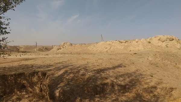 午前の残りは、アフラシャブの丘周辺の見所を回りました。まず向かったのは「ウルグ・ベク天文台」です。シャーヒズィンダ廟群から東北に約2.5kmの場所にあるので、さすがにYandex Goでタクシーを呼ぶことを考えましたが、良い物を見せてもらった後でテンションが上がっていたこともあり、そのままの勢いで徒歩で行くことを選択してしまいました。シャーヒズィンダ廟群前の大通り(シャーヒズィンダ通り)をひたすら歩きます。途中、左手にはアフシャラブの丘が見えたものの、ここからは岩と砂の荒涼とした景観しか見えませんでした。まあ、それ故にチンギス・ハーンが破壊しまくった場所なんだなぁという実感も強まりましたね。天文台が建てられた場所だけあって、近づくにつれて勾配もきつくなり、改めて徒歩は失敗だったなぁと感じながらも、しんどかったがゆえに記憶には刻み込まれましたw タクシーとかであっさり移動しちゃうと頭に何も残らないんですよね。約40分歩いて、ようやくウルグ・ベク天文台に到着です。