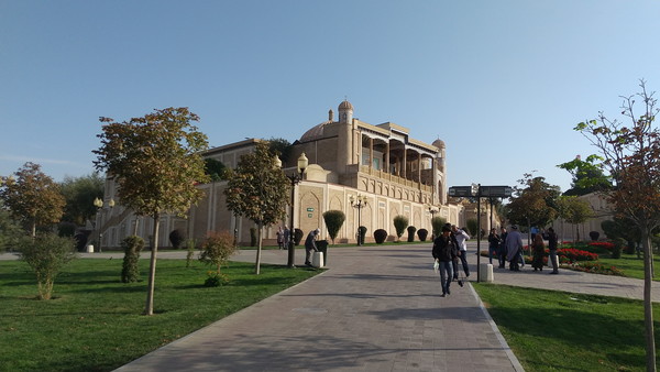 カリモフ通りの中ほどには、カフェやお土産屋さんに混じって、学校と思しき建物があるのですが、ちょうど登校のタイミングらしく、制服を着た子供たちの姿が目立ちました。ビビハニム・モスク前では、清掃作業をしている方々の姿が目立ちました。この方々のおかげで、ゴミ1つ落ちていない綺麗な空間を観光できているわけで、本当に感謝しかありません。
