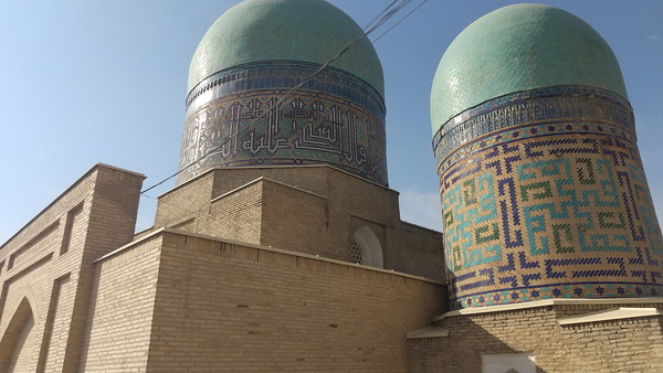 順番は逆になってしまうのですが、振り返って「天国への階段」途中の脇にあるのが、2つのドームから成る「コシュ・グンバズ廟」です。第4代君主ウルグ・ベクの天文学の先生カズィ・ザデ・ルミの廟とされています。