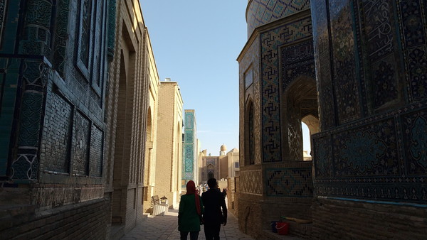 アフシャラブの丘の南麓にあるシャーヒズィンダ廟群は、9世紀~15世紀に建てられたティムールゆかりの人々が眠る霊廟群です。霊廟を含む20以上の建築物から構成され、サマルカンドの聖地でありウズベキスタン屈指の観光名所の一つです。