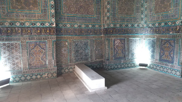 右奥にあるのは、ティムールの妹の廟である「シリンベク・アカ廟」です。こちらは、霊廟内部の装飾も見事です。