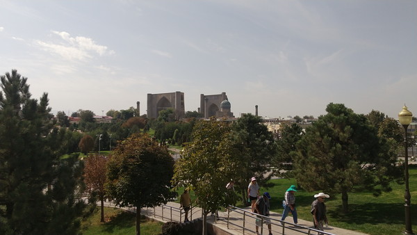 モスク前の休憩スペースから見える景観は素晴らしく、遠くにはビビハニム・モスクが見えます。この距離でもひときわ存在感を放っており、あのモスクが如何に巨大か分かります。