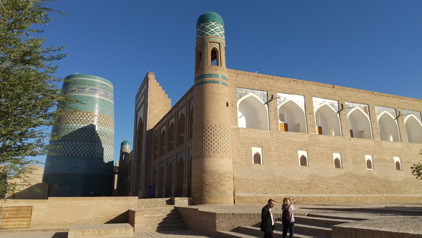 カラン・ミナレットの後ろにはヒヴァ最大のメドレセ「ムハマンド・アミン・メドレセ」があります。この表現は正しくなくて、メドレセがまずあって、その付属物としてミナレットが配置されているという位置づけです。メドレセには125ものフジュラ(小部屋)があり、260人の生徒を受け入れることができたそうです。現在は、ホテル「Orient Star Khiva Hotel」として使用されています。