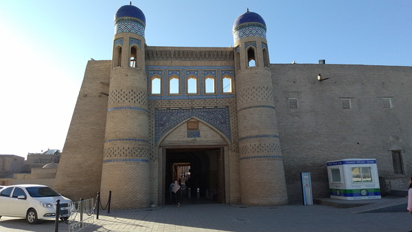 14時半に送迎を約束していたのですが、早く着いてしまったのでドライバーさんはまだ来ていませんでした。しばらく駐車場でウロウロしていると、ドライバーさんがやって来ました。ドライバーさんは若いお兄さんで英語が堪能だったので、ヒヴァまでの約30分間、ずっと喋りっぱなしでした。私の方が明らかに実力不足だったので、会話についていくのに必死で、気づいたらヒヴァについていました。