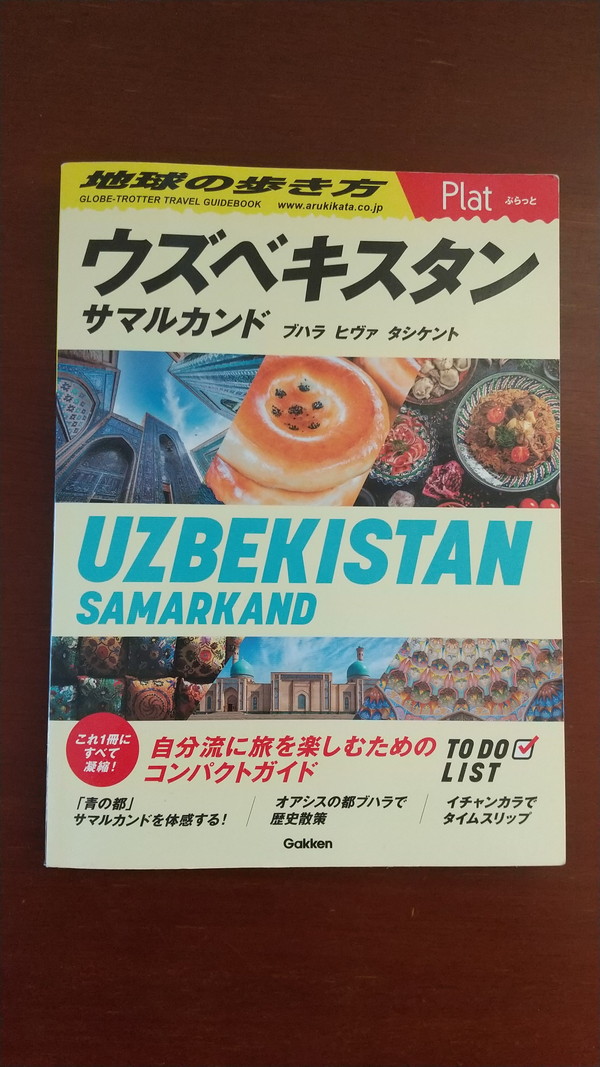 いつもお世話になっている「地球の歩き方 Plat ウズベキスタン」持っていきました。タイトルから分かるように、通常の地球の歩き方とは異なる作りになっています(コンパクト版)。通常版が中央アジア全体をカバーしているのに対し、コンパクト版はウズベキスタン国内のみを扱っています。今回はウズベキスタン国内のみの旅行であること、通常版は2019-20年版が最新と古いこともあり、コンパクト版を持って行ったのですが、これは失敗でした。どちらの本も同程度の厚さですが、通常版の方が圧倒的に情報が細かく、これに比べるとコンパクト版は最低限の内容は書かれていますが、情報量は見劣りします。念のため、通常版の必要部分を電子データにして持って行ったのですが、こちらの方を頻繁に参照していました。