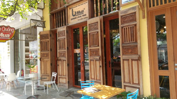 ここ数日はハンバーガーやサンドイッチなどをメインに口にしていたこともあってか、ダナンではローカルフードに対する意欲が湧いてきました。チャンフー通りには多くのレストランやカフェが集まっており、ローカルフードだけでなく、ピザやパスタなどの洋食から日本料理のお店まで選択肢が沢山あります。その中でも、ダナンのローカルフードであるミークアンという麺料理が気になっていたので、ブログなどで紹介されていたミークアン・バームアに行って見ました。ホテルからはチャンフー通りを南に約1km歩いた場所にあります。チャンフー通りは、交通量はそれなりに多いのですが、歩道はちゃんと歩けるように整備されていますし、歩行者用の信号機も設置されているので、ストレスを感じることなく歩くことができました。15分ほど歩くと、チャンフー通りと交差する大きな通りがありますので、そこを西に曲がって少し歩くとミークアン・バームアに到着です。後述するロン橋(ドラゴンブリッジ)の西詰の近くでもあります。お店の場所は、評判通りのお洒落な外観なのですぐ分かりました。こちらのお店は、ダナンで数店舗を営業しているチェーン店の一つで、その中でも内装が綺麗で料理が美味しいと評判のようです。