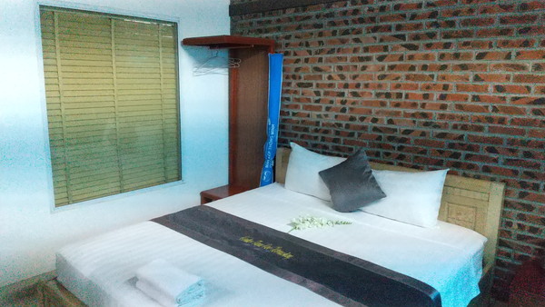 ニンビンのホテルはタムコック周辺に集中しており、次いでチャンアンやニンビン駅周辺にもまとまった数のホテルがあります。ニンビンに数日滞在するのであれば、レストランやカフェも多く集まるタムコック周辺のホテルにするのが無難な選択となります。こちらのホテルは約2ヶ月前に、booking.comで予約しました。バンガロータイプの部屋で、一泊朝食付きで約2,200円とお得な料金で利用できました。建物はホテルというよりは、民家の一部を貸し出しているようなイメージです。実際、こちらは家族経営のホテルで、英語が流暢な女性がメインで対応してくれました。女性のほか、旦那さん、小さいお子さん、女性のお父さんとお母さんという3世代の家族構成で同じ敷地内で一緒に住んでいるため、ベトナムの人々の普段の生活の様子が垣間見えるのも面白い点です。