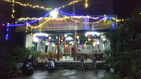 メイン通りはカラオケバーのようなお店もあって大変騒がしく、できれば静かな場所で食事をしたいと考えていたのですが、ちょうどピッタリなレストランがありました。「Thảo Béo Restaurant Bar」というお店で、メイン通りからは少し奥に行った場所にあり、周囲も民家ばかりなので静かで落ち着いた雰囲気です。ニンビンを観光した日本人の方もYoutubeでオススメしていました。朝から夜遅くまで営業しているようなので、好きなタイミングで食事ができるのも良い点です。