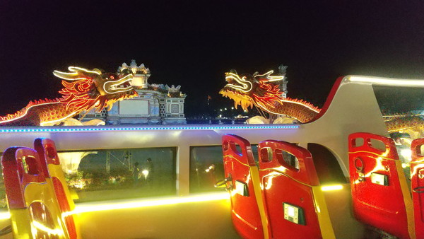 フエのオープントップバスについては、情報が少なくて詳細はあまり良く分かっていません。日中と夜の2つのルートがあり、日中はグエン朝王宮やドンバマーケットなどの市内の観光名所に加え、カイディン帝陵などの郊外も回るルートで、夜は市内のみを回るルートになっています。スケジュールは、日中は9時~16時の間に2時間に1本、夜は17時~20時の間に1時間に1本程度運行しています。平日と土日、祝日では運行に違いもあるようなので注意が必要です。