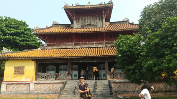 次に見えてくる閲是堂はベトナム最古の劇場で、1826年に2代皇帝のミンマン帝(明命帝)の命により建てられました。1日に2回、かつて皇族のみが楽しんだ宮廷雅楽と舞踊を楽しむことができます。閲是堂については、入口だけ少し覗いて王宮の南東に向かいます。