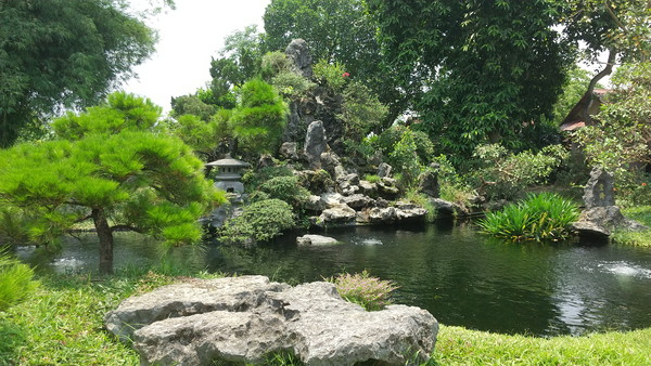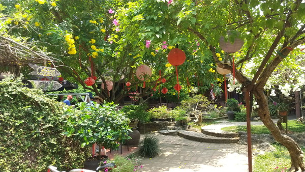 100年以上の歴史を持つ庭園は、色とりどりに植物が植えられており、フエの伝統的建築様式による建物と合わさって良い景観を作っていました。