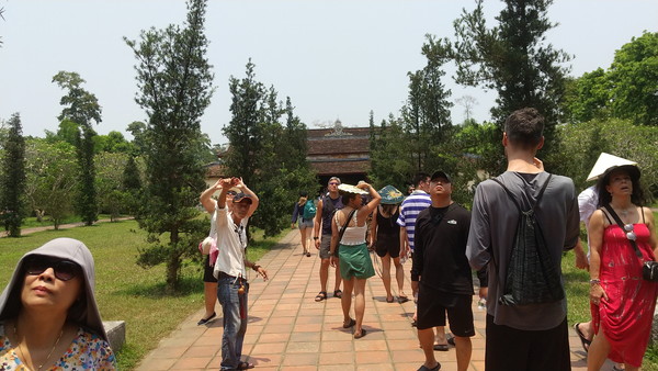 昼食の休憩で大分体力は回復したものの、外の暑さは尋常ではなく、少し歩くだけであっという間に汗だくになってしまいました。ミンマン帝陵は思った以上に広くて、炎天下の中での観光は大変厳しいものがありました。個人で観光する場合は、午前中の体力のあるうちに来ることをオススメします。