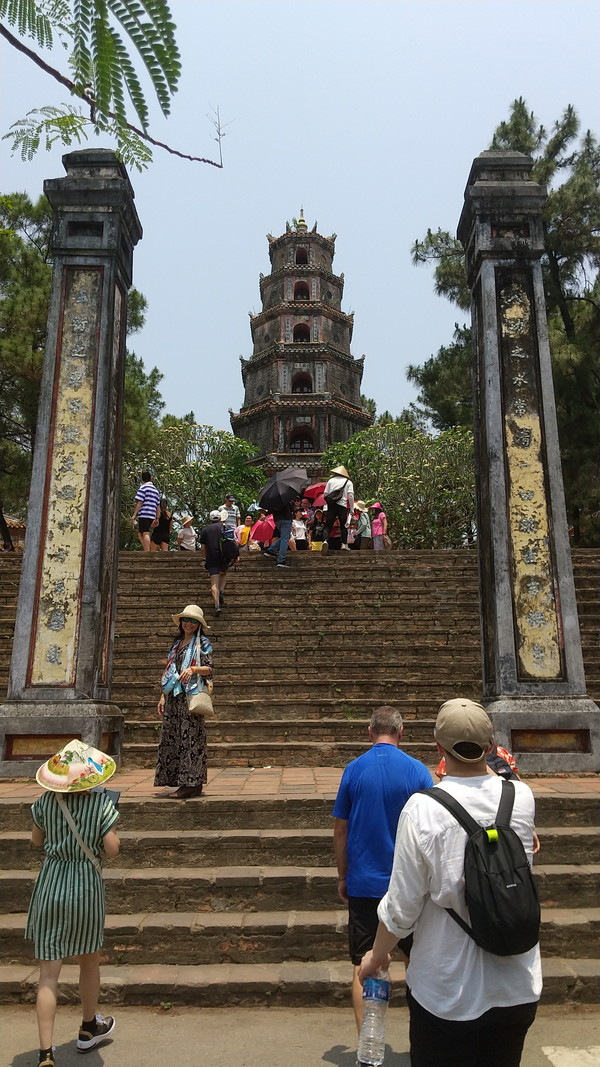 船からのフォン川の景観を楽しんでいるのも束の間、約20分でティエンムー寺のすぐそばにあるボート乗り場に到着です。ボート乗り場からお寺の敷地までは高低差があって、石段によって結ばれています。