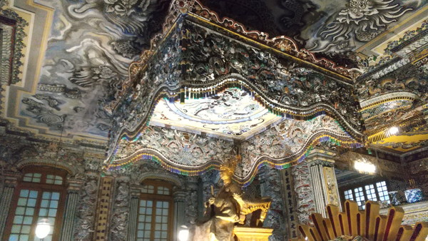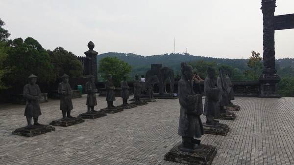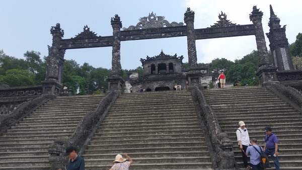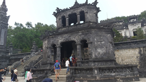 ミンマン帝陵の次は、約4km東にあるカイディン帝陵です。第12代皇帝カイディン帝(啓定帝)の陵墓です。こちらの陵墓は他の陵墓と比べると、西洋の建築様式が取り入れられているのが特徴です。カイディン帝はフランスにより擁立されたこともあって、フランスに対して融和的だったのが良く表れています。