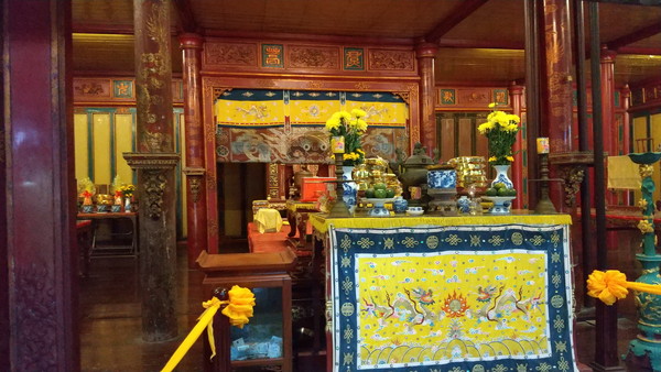 最後に見学したのが、王宮の南東のエリアで、太廟と肇廟があります。肇廟は、江南朝の太祖ディエン・グエン・ホアンの父、グエン・キムを祀っています。こちらについては廟内を見学しました。