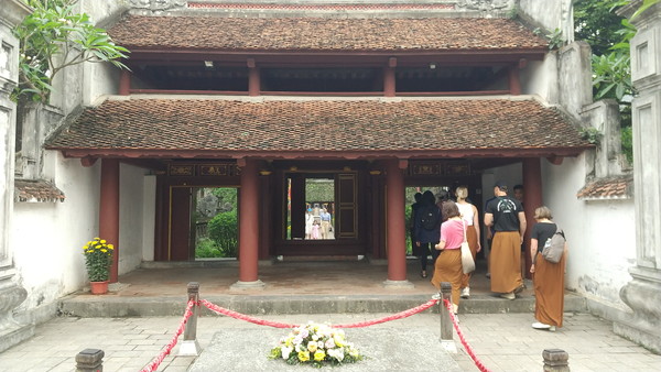 石段の脇は龍の彫刻が施されています。ハノイのタンロン遺跡でも似たような彫刻を見たのは記憶に新しいですが、ベトナムの人々も中国の方々に劣らず龍とか虎が好きみたいですね。この辺り、文化面での中国からの影響を強く感じます。
